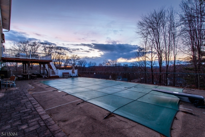 Refined and impeccably updated 4BR, 3.5BA center hall Colonial in sought-after McAtee Estates, offering breathtaking, unobstructed Ramapo Mountain views. Sunlit interiors showcase hardwood floors throughout and radiant heat across the living, dining, and foyer, creating warmth and comfort in every season. The inviting family room is centered around an electric-start gas stove fireplace. A beautifully designed kitchen features a Viking range, double oven, built-in microwave, custom pantry pull-outs, and a movable island for flexible everyday living and entertaining. The serene primary suite offers a walk-in closet and a renovated Jacuzzi shower. The main bath is appointed with durable Brazilian Ipe flooring. Recent upgrades include a newer roof, HVAC, and hot water heater. A whole-house generator ensures uninterrupted living, powering the home and heated in-ground saltwater pool, complete with robotic vacuum. Formal living and dining rooms are enhanced by removable stained glass accents. The full walkout basement with high ceilings and full bath offers exceptional potential for future living space. Additional highlights include a 2-car garage, municipal water and sewer, and natural gas. Ideally located near shopping, dining, and major commuting routes; Wanaque offers full-day kindergarten. A rare opportunity don't miss this move-in ready home.***Best & final by Tuesday 3/24 5PM.*** GSMLS 4015303