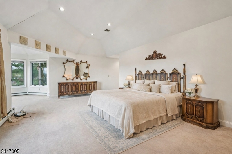 Welcome home to this beautifully maintained 4 bedroom, 4 bath Colonial offering approximately 4,700 sq ft of living space, perched atop a hill in the desirable Vizcaya Estates. A stunning two-story entry foyer sets the tone, opening to expansive living areas filled with natural light. The spacious living room with large windows flows into a comfortable sitting area, creating the perfect setting for everyday relaxation or entertaining. Just beyond, the sunken family room with a fireplace provides a warm and inviting atmosphere. The elegant dining room is ideal for intimate dinners and gatherings and leads to the eat-in kitchen featuring custom cabinetry, ample counter space, stainless steel appliances, and dining area. A large pantry, home office, laundry room, full bathroom, and access to the garage complete the main level. Upstairs, the impressive primary suite offers a private sitting area, two walk-in closets, and a spacious ensuite bath. The princess suite includes a sitting area, skylights, and its own full bath, while two additional bedrooms and another full bath complete the level. The full unfinished basement with high ceilings offers endless potential for additional living space. Step outside to a spacious patio overlooking the private wooded backyard perfect for outdoor dining, entertaining with plenty of space to add a pool. A three-car attached garage and ample driveway parking add convenience. Ideally located near NYC transportation, shopping, and dining. GSMLS 4014720