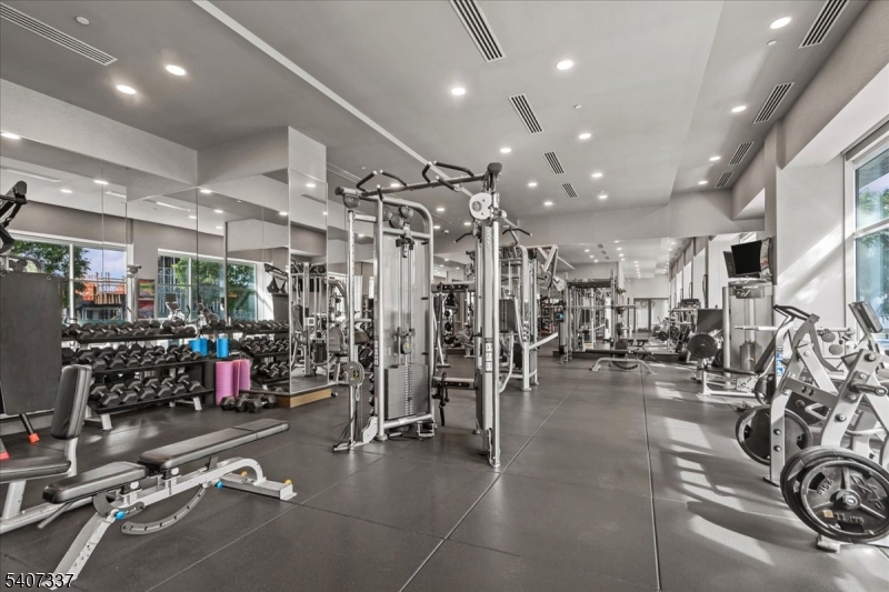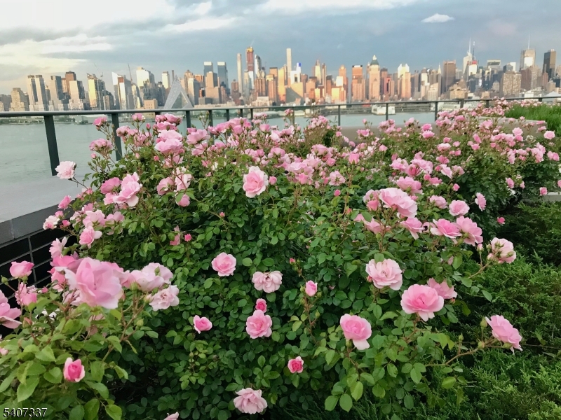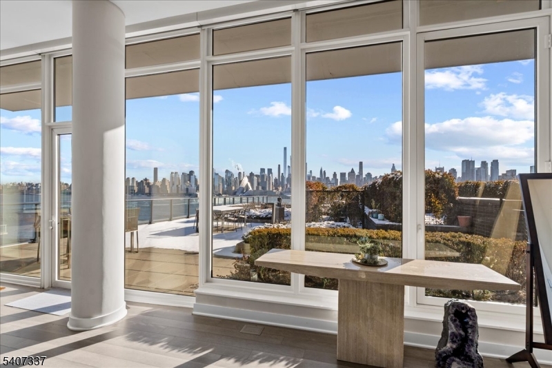 Just one block from the NYC Waterway terminal, this exceptional residence offers a short walk and an effortless commute to Manhattan. The highlight of the home is an enormous 1,500 sq. ft. private terrace overlooking the Hudson River an entertainer's dream capable of hosting gatherings of 75 guests or more. Panoramic river and skyline views will leave your guests truly amazed. The primary suite is a private retreat, featuring a spa-like bathroom with a large walk-in rain shower enclosed in glass, an oversized soaking tub with ceiling water flow, and dual vanities. Floor-to-ceiling glass panes throughout the home flood the space with natural light, complemented by over $100,000 in custom, press-button window shades installed by the owner. Residents enjoy an array of luxury amenities, including an ultra-modern gymnasium, rooftop swimming pool, media room, and resident lounge. The gourmet kitchen is equipped with high-end appliances and a built-in wine refrigerator, perfect for entertaining. The unit includes two deeded parking spaces in a gated, secure garage, along with two private storage units conveniently located on the second floor. Terrace garden maintenance is included in the HOA, and all utilities are covered except electricity. GSMLS 4006395