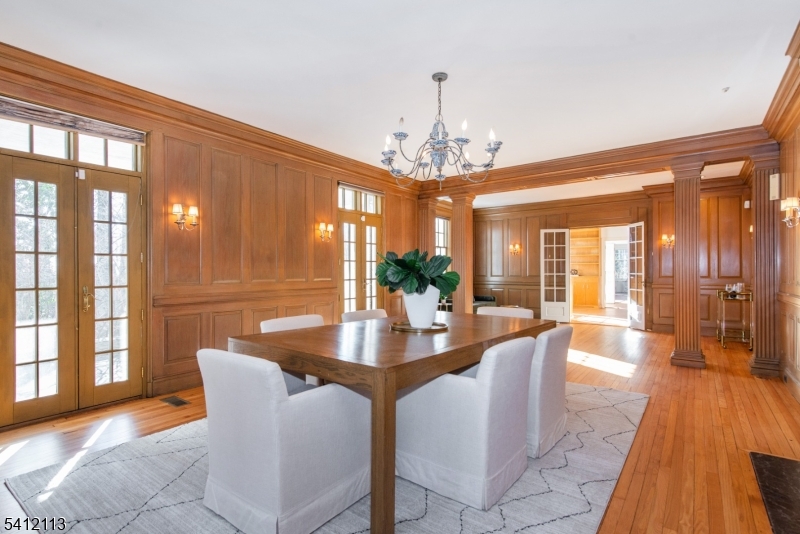 Set within the storied gates of Llewellyn Park, 5 Rocky Way offers a rare blend of privacy, scale, and timeless elegance on a wooded, secluded lot with a quiet, serene setting. A four-car attached garage with carriage house above provides exceptional flexibility, featuring a one-bedroom, one-bath residence with kitchen and living space ideal for guests, or creative use. The main home is designed for both grand entertaining and everyday comfort, showcasing a spacious eat-in kitchen with breakfast area ready for your personal vision, formal dining room, solarium, sun-filled living and family rooms, and a convenient first-floor powder room and laundry. Custom built-ins, five fireplaces, and beautiful hardwood floors throughout add warmth and character. A sweeping center-hall staircase leads to a gracious second level with 2 lovely primary suites, three additional bedrooms, and two baths. The third floor offers two more bedrooms, a full bath, and abundant storage. Outdoor living is equally inviting, with a private patio, covered patio, multiple balconies, and charming architectural details that enhance the home's classic character. Ample parking and easy access to major highways, NYC transit, and Montclair's shopping and dining complete this exceptional offering an estate-style retreat moments from everything GSMLS 4010367