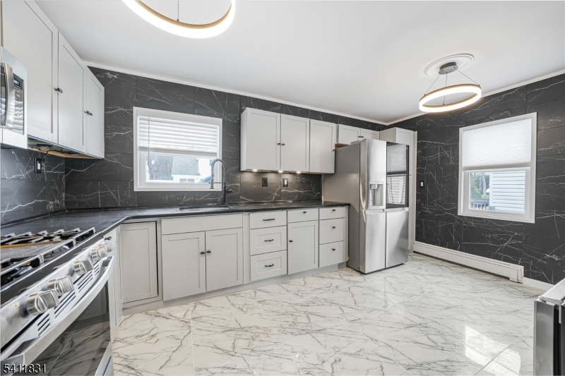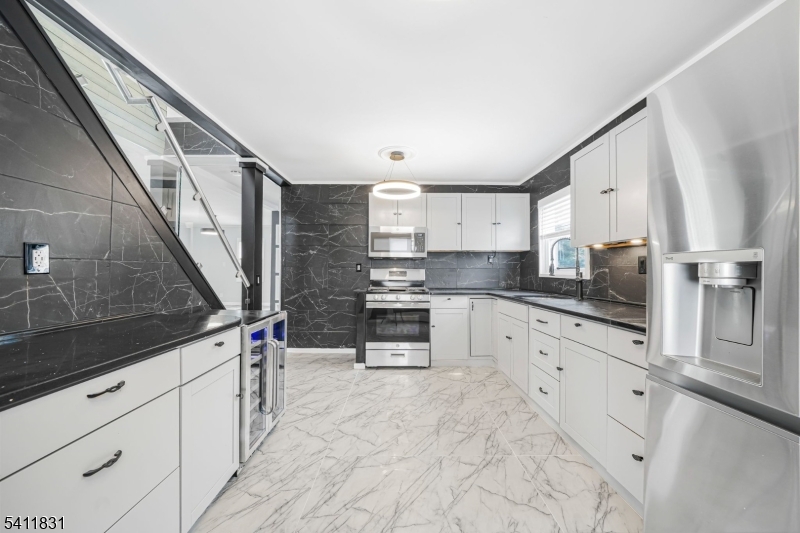This completely renovated home offers approximately 2,500 square feet of beautifully designed living space. Located on a quiet street in a highly desirable West Orange neighborhood. Featuring an open floor plan ideal for modern living and entertaining, the home showcases a stunning gourmet kitchen with stainless steel appliances, wine refrigerator, granite countertops, and detailed finishes throughout. The inviting living room boasts a charming wood-burning fireplace and flows seamlessly into the dining area. First floor includes a bedroom and main bath. Second level offers a private primary suite with a luxurious primary bath and stall shower, an additional bedroom and a versatile office area. The fully finished lower level provides extra living space, a full bath, laundry area and ample storage. Exterior upgrades include new siding, Standing-Seam metal roof, driveway, stairs and railings. Completing the property is a two-car detached garage, abundant parking, grassy area with a shed and privacy fence perfect for relaxing or entertaining. Ideally located just minutes from Turtle Back Zoo and South Mountain Reservation, this home also offers convenient access to the local Park-and-Ride with shuttle service to nearby train stations, making commuting a breeze. GSMLS 4015210